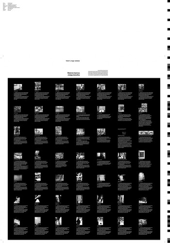Limited edition poster to complement the publication, ‘Imprinted Mater’. Displaying the entire index page from the publication, the poster depicts original works, archival images and research material from the Archivo General de la Nación Argentina (Dpto. Doc. Fotográficos). All traces of production are maintained in the design of the poster, which keeps the colour bar and crop marks to reference Zito Lema’s attempt to show that like history, photography, the archive and the human gaze, an exhibition is part of the continuous process of writing and re-writing over past histories. The poster has been designed by Studio Veronica Ditting and reflect and reference Zito Lema’s individual working practice, which tracks and explores her material and personal processes.